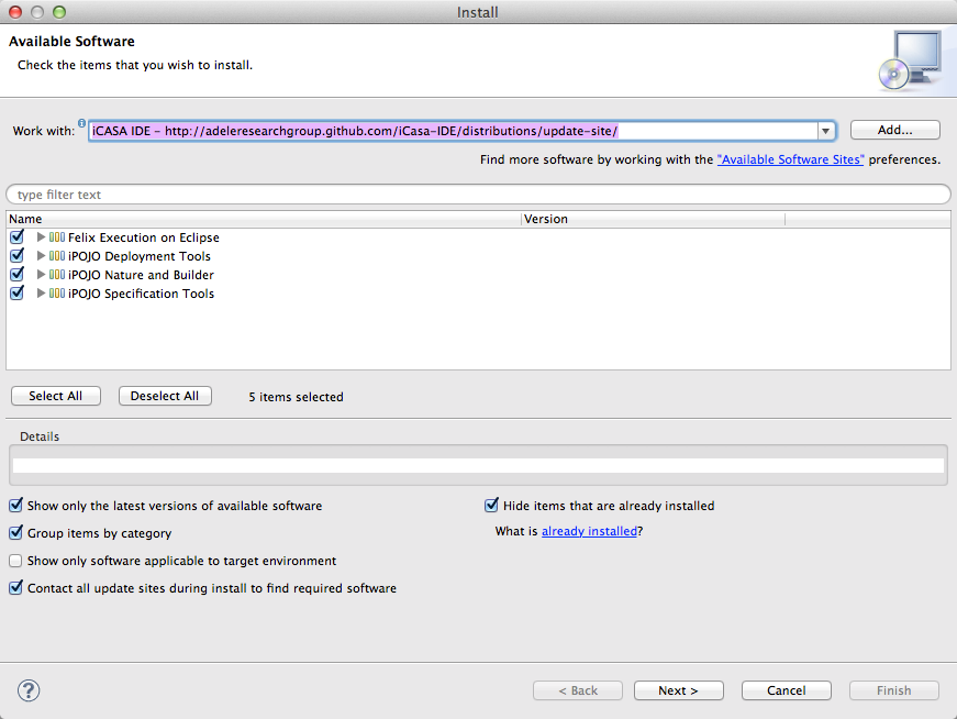 Download and unzip the iCASA runtime teaching distribution (Select the iCasa Teaching Distribution). You can rename the directory if you want.
