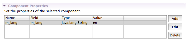 Go to the “Component Definition” and add the property lang in the “Component Properties”. Use the field m_field and the default value “en”.