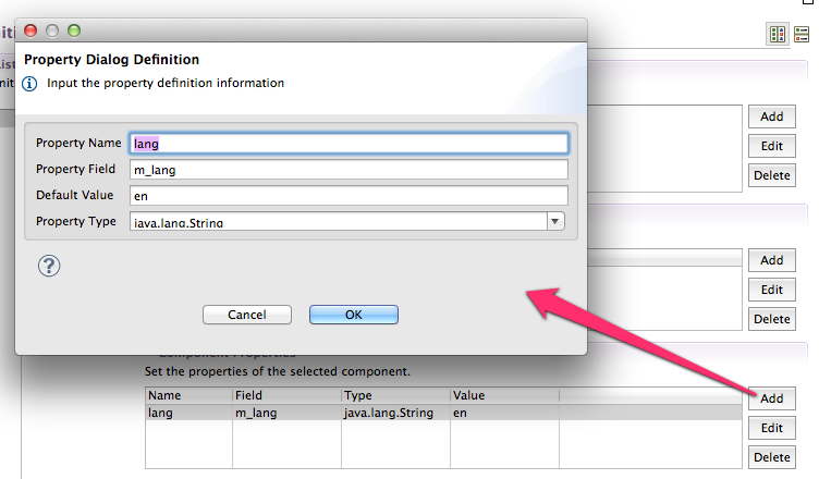 Properties provides an handy way to configure the different component instances. In the next section we will introduce the services and see how we could have implement this example using services.